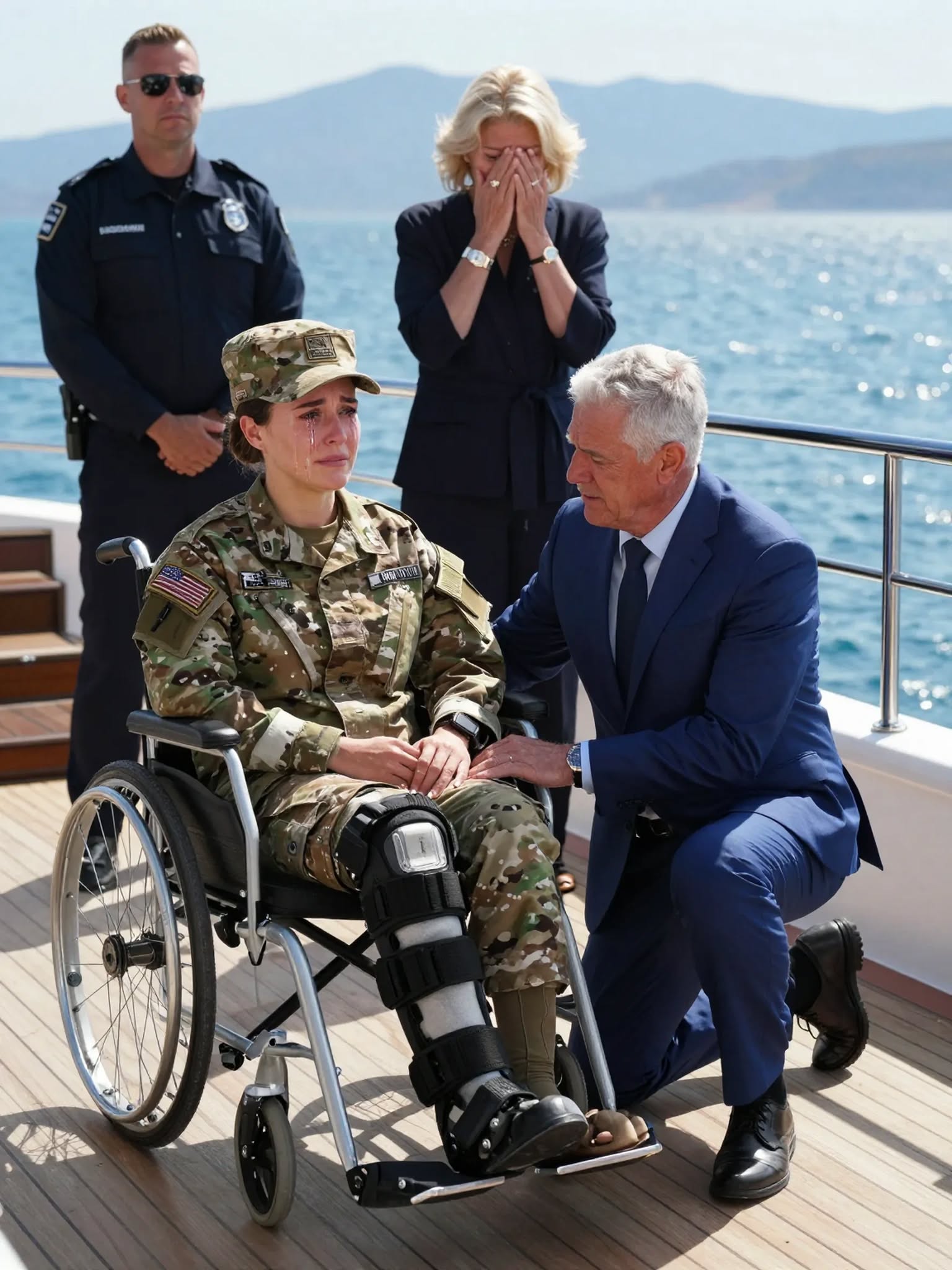 My father looked at my wheelchair, took a drink of beer, and told me to go to the VA because he “didn’t have space for cripples” in the house I had secretly paid off for him. Three days later, while he threw a party celebrating the mortgage being gone, the bank called on speaker and announced the truth: I was the new owner, and he had one hour to get out. Part 1 My name is Ethan Miller. I was thirty-two years old the afternoon my father shut the front door in my face, and if you had told me even a month earlier that I would survive a war overseas only to be turned away from my own family home like a trespasser, I would have called you cruel. The first thing my father said to me was not welcome home. It was, “We don’t run a nursing home.” He stood in the doorway with a can of cheap beer in one hand, his broad frame filling the entrance like a barricade. He wore the same old red flannel shirts he had favored my entire childhood, the same worn work boots, the same expression that always managed to combine irritation with self-pity, as though other people’s needs were personal attacks on his comfort. Rain had begun to fall, a gray Ohio drizzle that turned the driveway slick and dark, and behind me the taxi idled at the curb, its exhaust drifting low across the street. I had wheeled myself all the way up the driveway already, my palms stinging from the rims, my shoulders burning from the grade of the incline. It was the same driveway I used to shovel as a kid every winter before school, back when my legs worked and my biggest problem was algebra. Now, I sat in dress blues, medals polished and perfectly placed, the fabric stiff and formal against a body that still had not fully learned its own new geometry. My chair stood on the porch boards I had paid to refinish three summers ago. The house behind him smelled exactly the same even from the threshold—lemon polish, stale smoke, old carpet, and something fried in too much oil. For a single, humiliating second, some part of me had expected a banner, or a hug, or even the awkward stiffness of a family trying and failing to be loving. Instead my father looked only at the place where my legs used to be. His gaze lingered there, his face tightening not with grief, not with pity, but with inconvenience. “Go to the VA,” he said. “We don’t have room for cripples.” He did not know that the roof over his head and the floors under his boots had been paid for by the deployment money, reenlistment bonuses, disability backpay, and injury settlement I had spent years funneling home while he complained about mortgage payments and played the martyr in his own kitchen. “Dad, it’s me,” I said, forcing my voice to stay steady through the phantom pain that had started up in the missing left calf like live wires under skin that no longer existed. “I’m back. I tried calling, but—” He took a swallow of beer and leaned harder into the frame. “I see that. I see the chair. And I already told your mother I’m not turning this place into a facility.” “People like me?” I asked when he said the VA had beds for people like me. My voice shook, but not from fear. It was shock and nausea and something darker beginning to rise underneath both. “I’m your son.” “You’re a burden,” he said, with the flat practicality men like him mistake for honesty. “I’m not changing diapers at my age. We finally got this place how we want it. Turn around and go somewhere else.” The cruelty was not theatrical. That was what made it worse. He spoke about me the way a man talks about a busted washing machine—regretful only insofar as something broken might become expensive. I looked past him into the hallway. There was a welcome-home sign taped to the mirror, and for half a heartbeat my chest leapt before I saw the dog bed beneath it and understood. It wasn’t for me. Chloe’s new puppy was getting the celebration. Then my sister appeared behind him, twenty-two and glossy and beautiful in the high-maintenance way that required money, time, and the firm belief that the world should organize itself around her convenience. She had an iced coffee in one hand and disdain already arranged across her face. She looked at the chair, then at me, and wrinkled her nose. “Seriously?” she said, laughing. “I literally just redid your room. I turned it into a walk-in closet for my shoes. The lighting is amazing. Where were you planning to sleep? The hallway?” For a second I thought I must have heard her wrong. My room. The room with my old baseball trophies, the model planes, the cheap desk where I’d filled out my enlistment paperwork at seventeen and kept it hidden from Dad for three days because I knew he’d say I was doing it for attention. “My room?” I repeated. “Well, you weren’t using it,” she said, inspecting her nails like we were discussing throw pillows. “And honestly, those wheels are going to destroy the hardwood.” Before I could answer, something small shot between my father and the frame. Leo. My ten-year-old brother. Skinny, bright-eyed, clutching the faded superhero blanket I had mailed him from Germany because he once told me over video chat that it helped him sleep when thunderstorms came through. “Ethan!” he shouted, his whole face lighting up with a kind of love adults often lose the ability to feel cleanly. He started for me, but Dad caught him by the back of the shirt and yanked him hard enough to make the kid stumble. “He can stay with me!” Leo yelled, fighting against his grip. “I have a bunk bed! He can take the top!” Chloe snorted. “He can’t climb to the top, idiot.” “Then he can have the bottom!” Leo shouted, tears already gathering. “I’ll sleep on the floor! Please, Dad!” “Enough!” My father slammed his hand against the doorframe. The glass rattled. “You’re embarrassing us. Get off the porch, Ethan. Go to the motel on Route 9. We’ll talk next week. Maybe.”